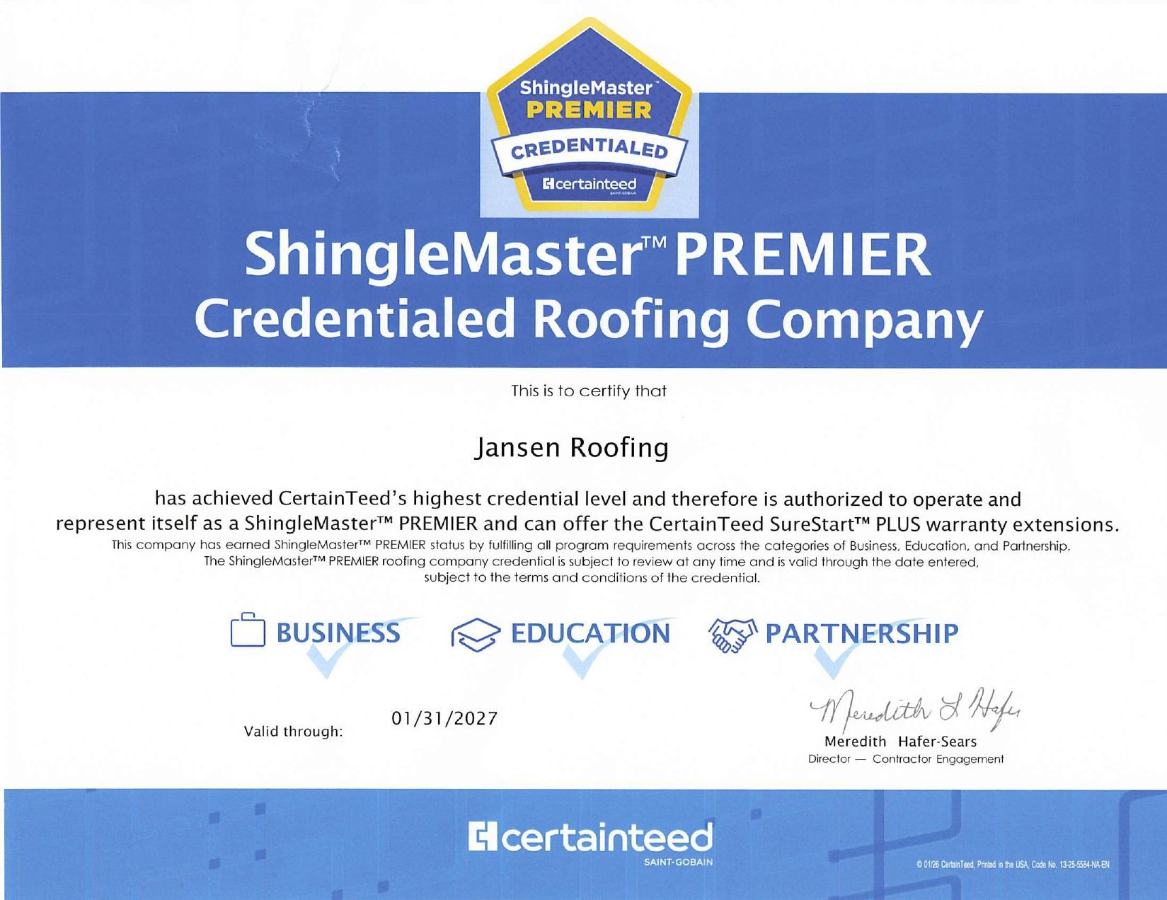 Is Jansen Roofing licensed and recognized by industry organizations?